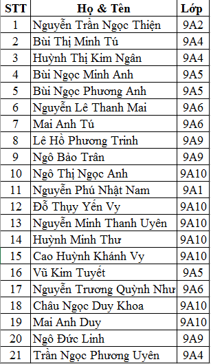 Xin chúc mừng 21 bạn có tên trong danh sách dưới đây đã hoàn thành và đạt kết quả tốt Lớp "Đối tượng Đoàn năm học 2016 - 2017. Đề nghị các bạn có tên nhanh chóng hoàn thành hồ sơ kết nạp Đoàn, Chi Đoàn sẽ tổ chức lễ kết nạp Đoàn cho các bạn vào dịp kỷ niệm 86 năm Ngày thành lập Đoàn.