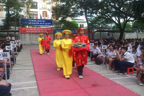 Với ý nghĩa đó, các em học sinh thân mến, nhiệm vụ của các em ngày hôm nay, các em là chủ nhân tương lai của đất nước sau này, các em phải cố gắng Rèn đức – Luyện tài, phấn đấu học tập để mai sau cùng góp sức mình dựng xây đất nước ngày càng phát triển và đi lên, xứng đáng với lịch sử hàng ngàn năm dựng nước và giữ nước của dân tộc ta, như những gì Bác Hồ kính yêu đã tin tưởng và trọn đặt niềm tin vào thế hệ của các em, xứng đáng với lời dạy của Bác “Các Vua Hùng đã có công dựng nước - Bác cháu ta phải cùng nhau giữ lấy nước”.